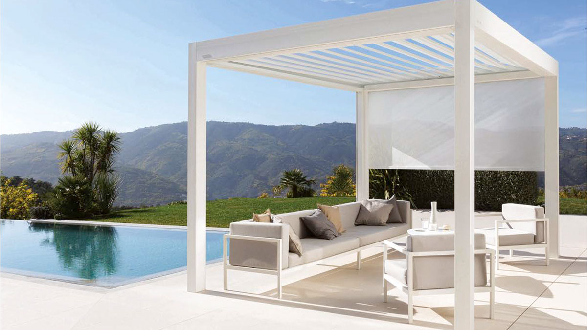 Die B160XL bildet die perfekte Grundlage für Ihr ganzjähriges Outdoor-Vergnügen. Die Überdachung zeichnet sich durch ein schlankes und elegantes Design aus, ohne sichtbare Schrauben oder Terrassenbefestigungen. Sie wählen selbst die gewünschte Farbe aus, legen die Abmessungen fest und passen die B160XL so vollständig an Ihr Haus und Ihren Garten an.