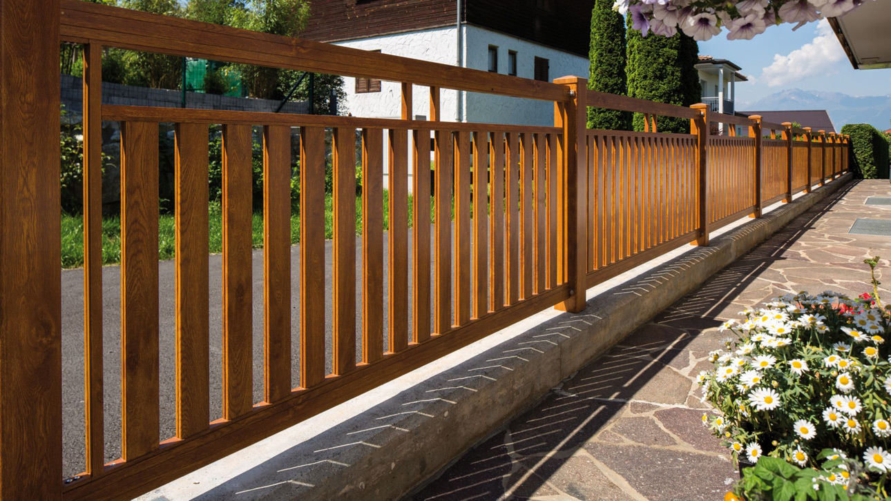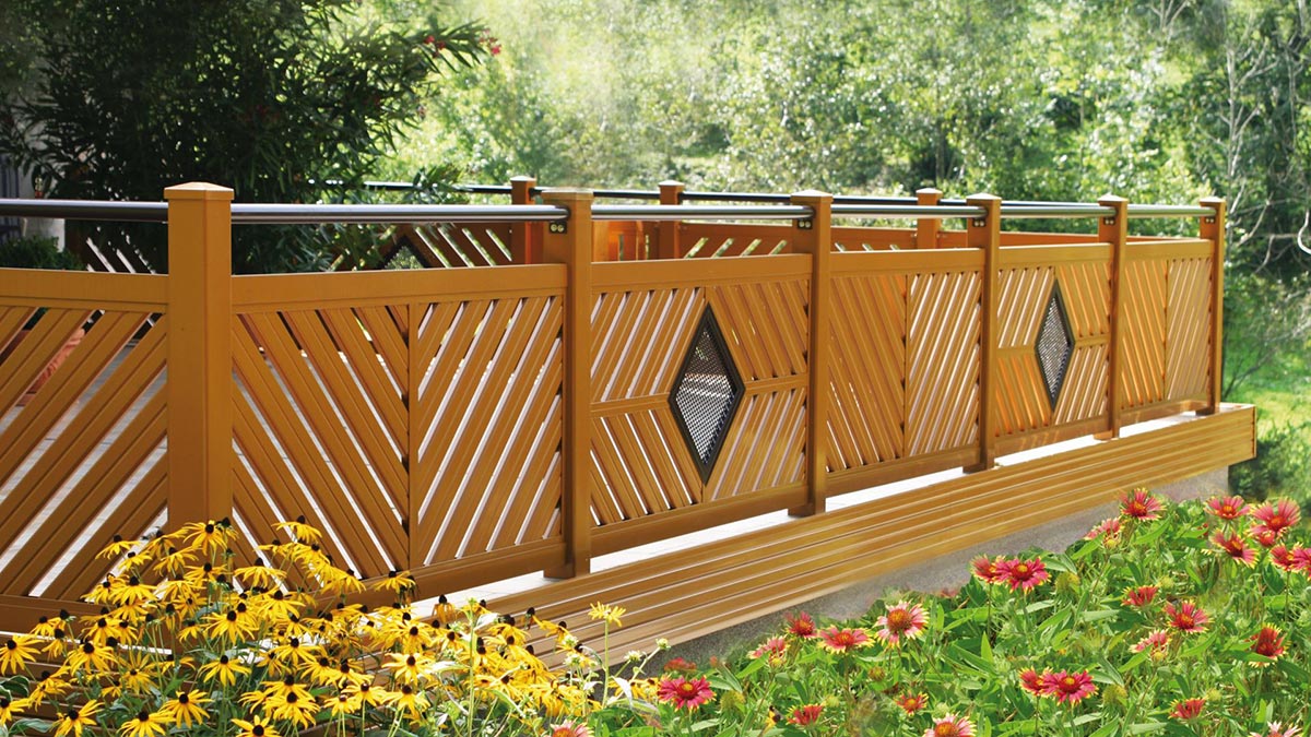 Aluzaun in Holzoptik