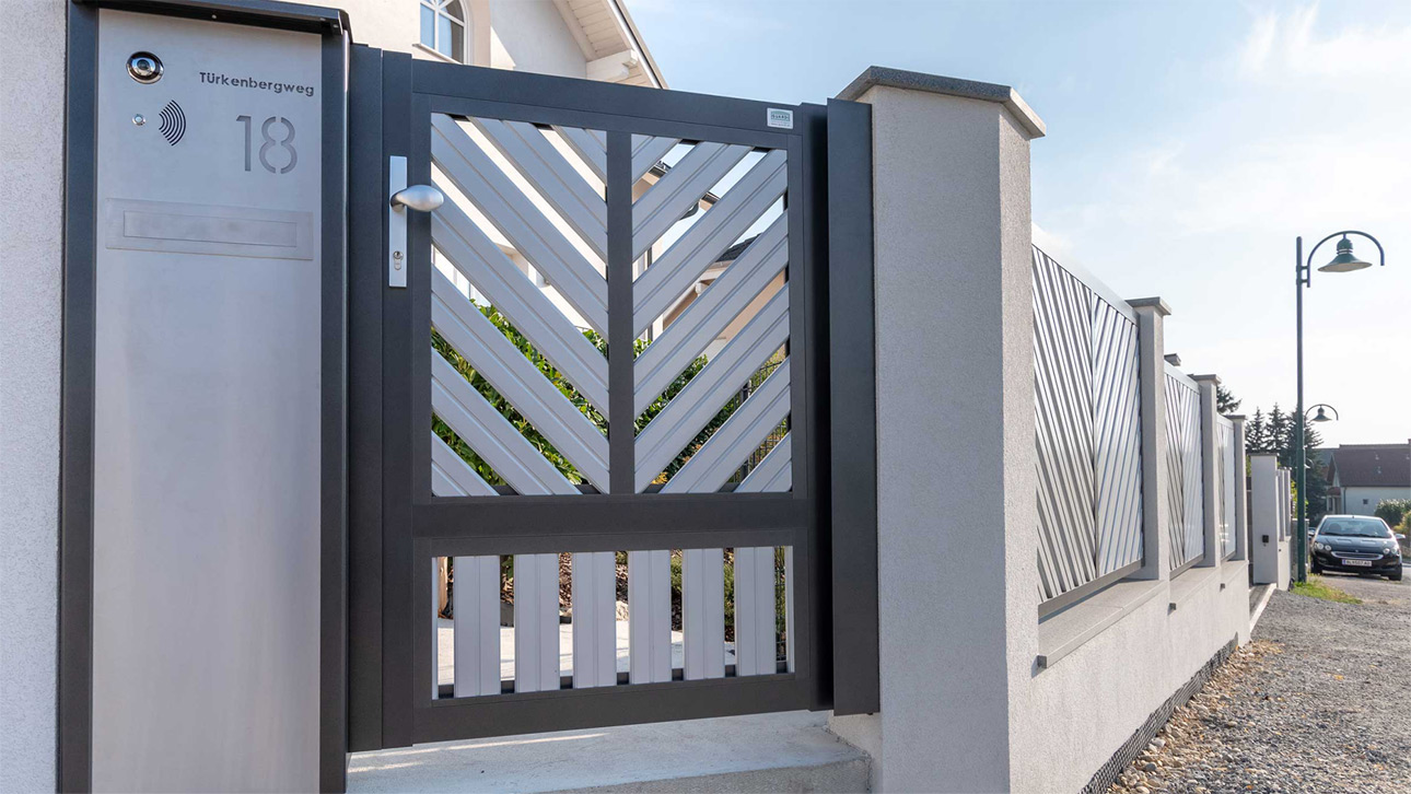 Aluminiumzäune von GUARDI erhalten Sie in zahlreichen Ausführungen mit hochwertiger Pulverbeschichtung und passendem Balkongeländer oder Gartentor.