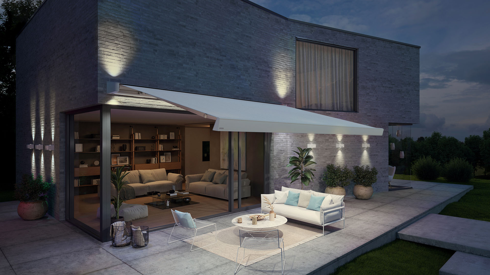 Ästhetisch und formschön präsentiert sich die markilux MX-4 mit geschlossener Kassette und umlaufender Sichtblende. Komponiert für die Beschattung großer Flächen, überzeugt sie mit ihrer avantgardistischen Gestaltung und innovativen Beleuchtungsoptionen.